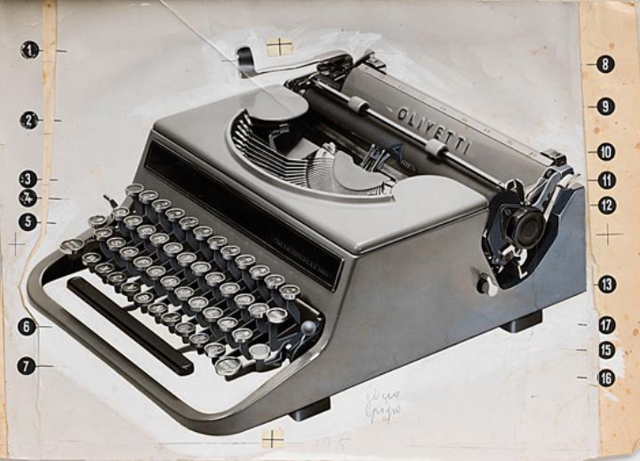 타자기의 상징, LETTERA 22: 마르첼로 니촐리(Marcello Nizzoli)가 설계한 이 모델은 경량, 기능성, 그리고 아름다움으로 기자와 작가들 사이에서 큰 인기를 끌었습니다. 현재 뉴욕 현대미술관(MoMA)의 영구 소장품으로 선정되어 있습니다.