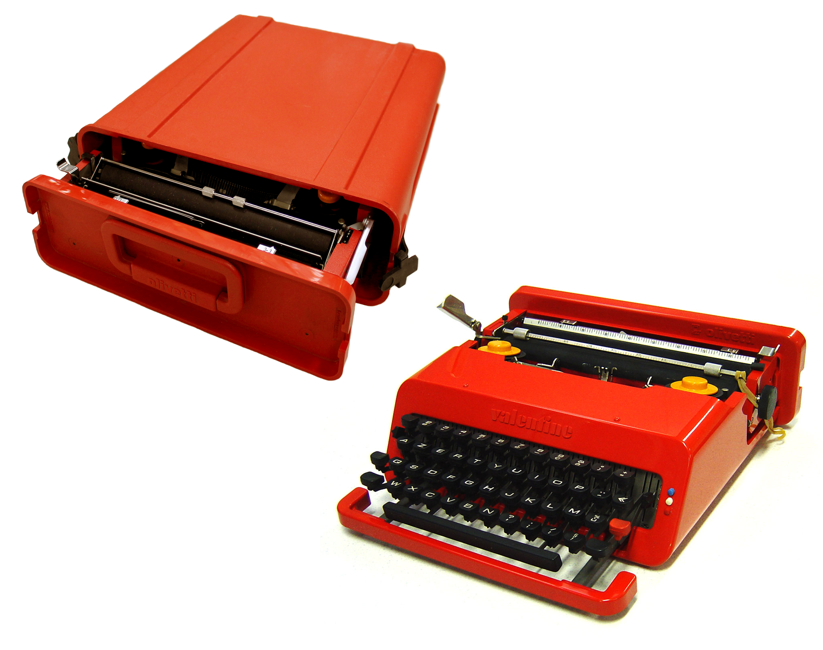 VALENTINE 휴대용 타자기: 에토레 소트사스(Ettore Sottsass)가 디자인한 이 타자기는 대담한 빨간색 디자인으로 주목받았습니다. 디자인의 역할을 순수한 기능을 넘어선 스타일의 영역으로 확장한 사례입니다.